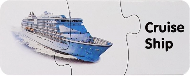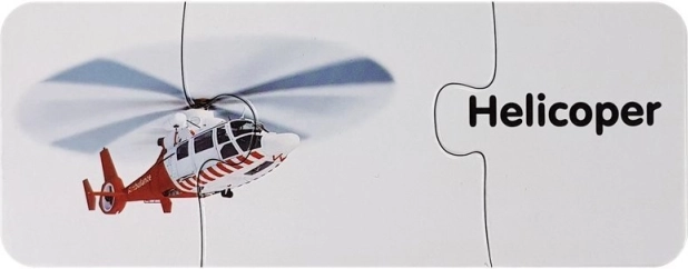 Zabaven komplet izobraževalnih sestavljank s prometnimi motivi za otroke od 3. leta dalje. Otroci povezujejo sliko vozila z besedo v angleščini in tako urijo prepoznavanje prevoznih sredstev, fino motoriko, logično mišljenje ter osnovno angleško besedišče. Vsebuje 10 samopreveritvenih parov za preprosto učenje skozi igro.