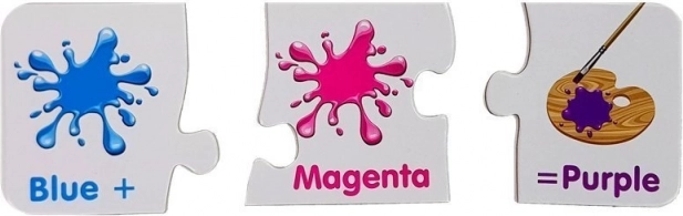 Vsaka mini sestavljanka prikazuje dve barvi in nastali odtenek. Otroci hitro razumejo principe mešanja in si barve bolje zapomnijo.