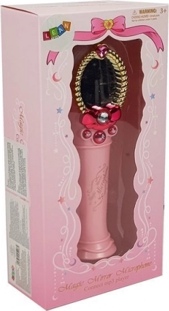 Ta otroški karaoke mikrofon v rožnati barvi spodbuja petje, ritem in prvo odrsko samozavest. Po vklopu se v okrašenem ogledalcu čarobno pojavi podoba deklice, konci mikrofona večbarvno svetijo, tri funkcijske tipke pa prinašajo glasbo in ritmične učinke.
