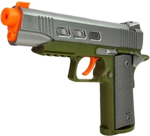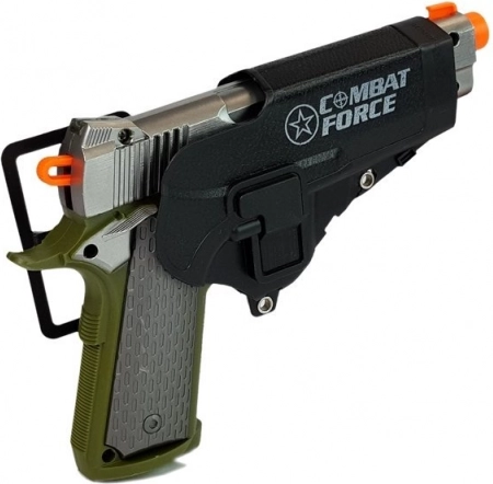 Ob pritisku na sprožilec pištola odda zvok strela, pri polnjenju pa še dodaten efekt. Vgrajeni svetlobni učinki še okrepijo akcijsko doživetje.