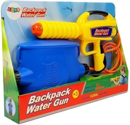 Ta vodni set vključuje večbarvno vodno pištolo, povezano s praktično hrbtno posodo. Zahvaljujoč posodi na hrbtu je igrača enostavno prenosna, otroci pa se bodo počutili kot pravi junaki. Igračo je zelo preprosto uporabljati — dovolj je napolniti posodo z vodo, jo skrbno zapreti, z nekaj potegi napumpati vodo in nameriti na cilj. Pištola ima doseg do 8 metrov.