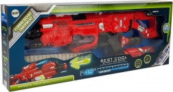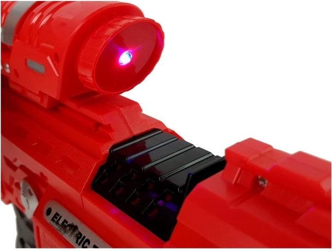 Ta rdeč in črn električni otroški pištolj ima futuristično obliko, idealno za vznemirljivo igro polno domišljije.