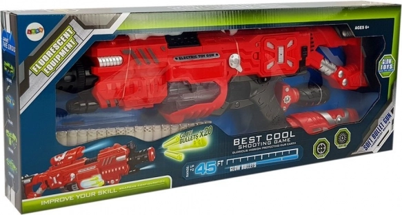Svetleče otroško orožje je popoln dodatek za vsakogar, ki obožuje domišljijske igre. Opremljeno je s svetlobnimi učinki, ki igri dodajajo povsem novo dimenzijo. Nabojnik sveti z belo svetlobo, zahvaljujoč temu so naboji vidni tudi v temi. Prisoten je tudi laser, ki označuje pot strela, vsak sprožilec pa ustvarja verodostojen zvok streljanja.