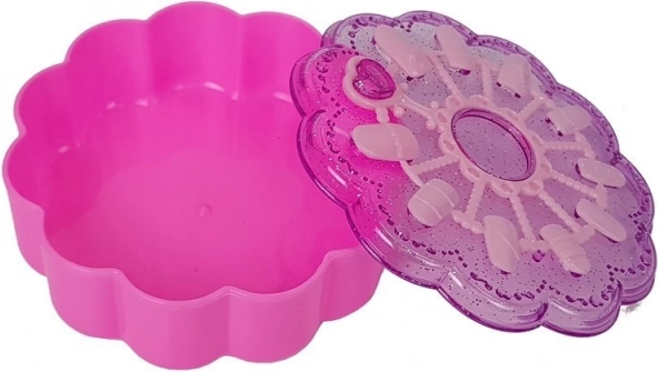 Plastična škatlica v obliki cveta je idealna za shranjevanje vseh komponent kompleta. Je privlačen dodatek v sobi vašega otroka.