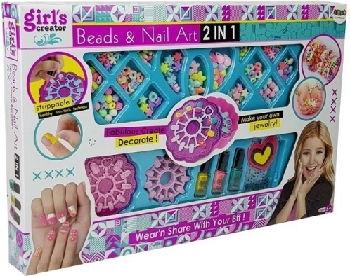 S tem kompletom lahko deklice ustvarjajo svoje edinstvene kose nakita in okrasijo svoje nohte. Odličen je za razvoj domišljije in umetniškega talenta. Dovolite svoji mali umetnici, da vtisne svojo osebnost v vsak zapestnici in vsako poslikavo nohtov.