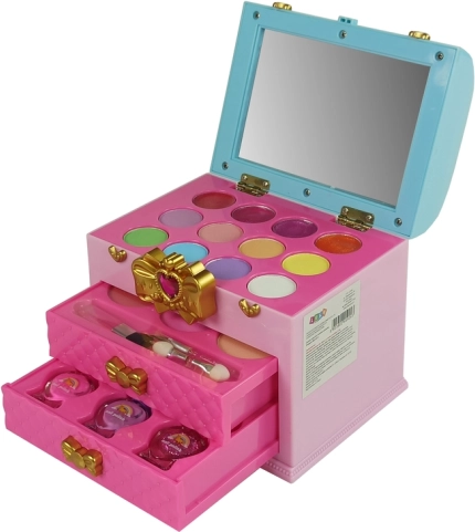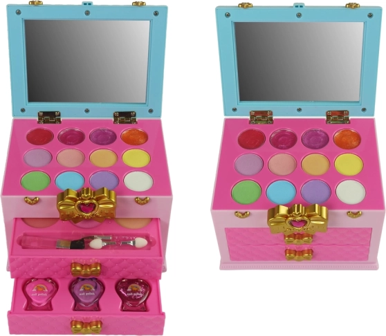 Set lepotna toaletka je sanjska izbira za vsako malo gospodično, ki si želi svoj kotiček za eksperimentiranje z lepoto in učenje prvih skrivnosti ličenja. Ta toaletka v obliki barvite škatle za nakit skriva bogato količino kozmetike za zabavo, kar otroku omogoča razvijanje ustvarjalnosti in estetskega čuta.