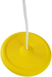Okrogla gugalnica s premerom 28 cm je opremljena z udobnim sedežem, debelejšim vrvom in elementom za obešanje. Njena montaža je enostavna in ni zahtevna. Priporočena višina montaže gugalnice je 35 do 59 cm nad tlemi, kar zagotavlja varnost med igro. Živa rumena barva pritegne pozornost vsakega otroka in ga navduši za daljšo zabavo.