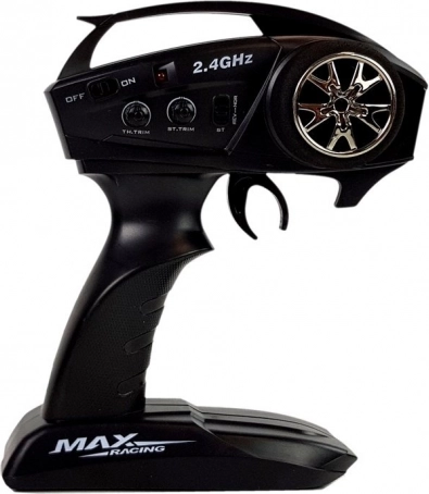 Upravljalnik deluje na frekvenci 2.4 GHz, kar omogoča dirkanje v skupinah brez medsebojnih motenj. Ima številne funkcije, vključno z vzvratno vožnjo, nastavitvijo zavijanja koles in regulacijo hitrosti, kar povečuje zabavo pri vožnji.