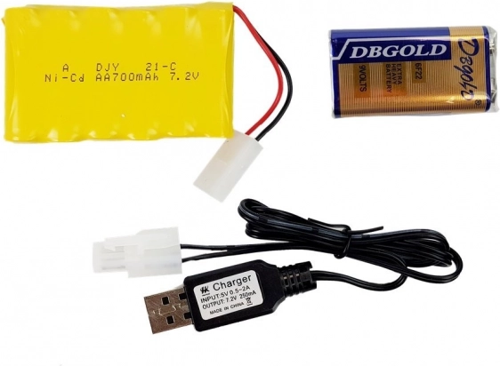 Priložen je akumulator 7.2 V 700 mAh in USB polnilec, zato lahko preprosto polnite in se hitro vrnete na progo.