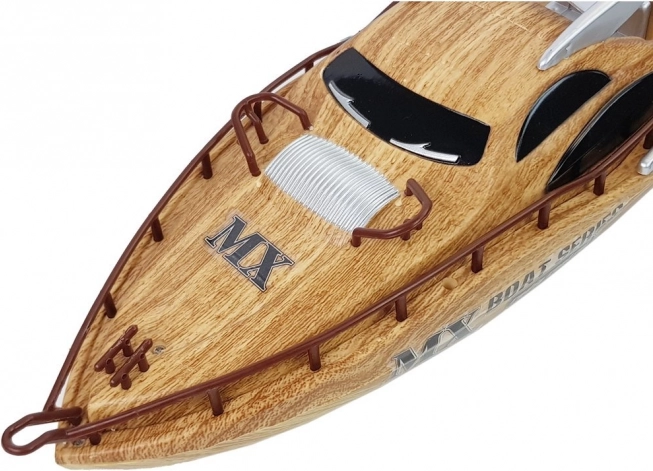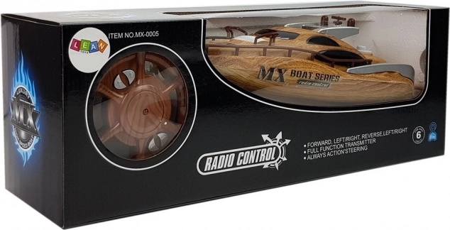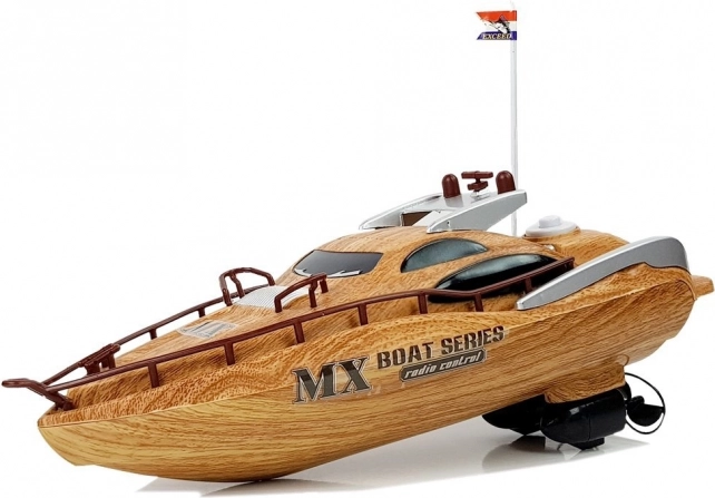 Enodelni plastični trup zagotavlja zanesljivo vodotesnost, zato se lahko osredotočite le na vožnjo. Dva zmogljiva motorja čolnu dajeta dinamiko za hitre starte in okretne manevre. Krmilnik v obliki krmila deluje na frekvenci 27 MHz in z izvlečno anteno zagotavlja zanesljiv doseg do 40 m.
