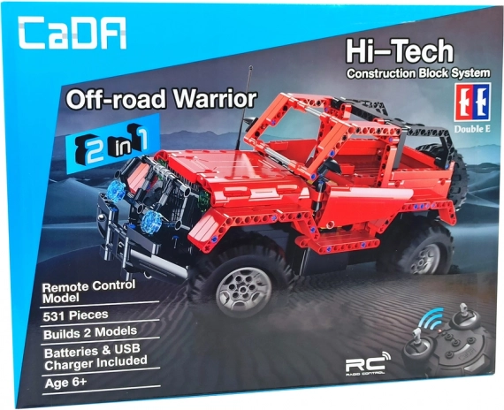 Sestavite svoje lastno terensko vozilo iz 531 kosov in ga upravljajte na daljavo prek 2,4G. Trpežni in enostavno združljivi elementi CADA razvijajo ustvarjalnost, fino motoriko in logično mišljenje. V paketu so daljinski upravljalnik, USB polnilec in akumulator 400 mAh za 10–15 minut vožnje, doseg upravljanja do 25 m.