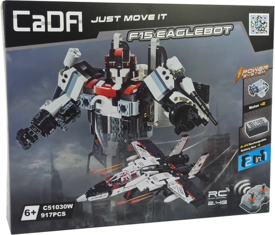Ta 2v1 konstruktor CADA bo navdušil vse male inženirje od 6 let naprej. Iz trdnih in varnih koščkov lahko zgradite artikulacijskega robota z daljinsko upravljanim gibanjem naprej/nazaj in levo/desno ali realističnega lovca F15 z odpirajočim se kokpitom in elementi akcijske igre. Prestavba med modeli je enostavna in spodbuja nadaljnje odkrivanje ter gradnjo.