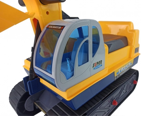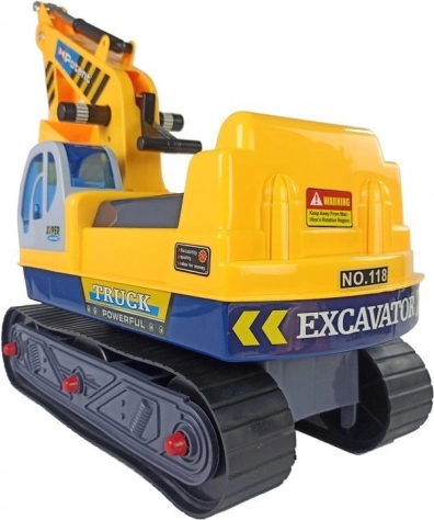 Otroški vozni bager s premičnim krakom in rumeno čelado