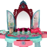 Razveselite svoje otroke s to čudovito barvito otroško toaletno mizico, ki bo njihovo sobico spremenila v pravljičen kotiček. Mizica je opremljena z zrcalom z osvetlitvijo in predvajanimi melodijami, ob katerih se bodo otroci počutili kot v pravljici. Komplet vsebuje varne in netoksične dodatke, zasnovane posebej za otroke.