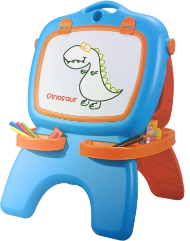 Ta otroška dvostranska tabla združuje magnetno belo površino za flomastre in črno kredno površino, zato lahko otroci vsak dan pišejo, rišejo in se učijo na različne načine. Modro-rdeča zasnova se poda v vsako otroško sobo, stabilna konstrukcija s predalčki pa ohranja vse pripomočke lepo pri roki.