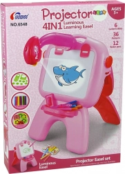 Ta skrbno izdelana, samostoječa tabla nudi dve risalni površini – belo za suho brisanje in črno za risanje s kredo. Na zgornjem delu je nameščen projektor, ki projicira živalice in like za lažje prerisovanje. V praktične predalčke lahko spravite markerje, krede in šablone. Idealna za otroško sobo in vsakodnevno ustvarjanje.