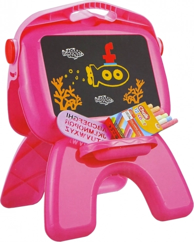 Odkrijte ustvarjalno zabavo s to dvostransko risalno tablo s projektorjem v rožnati barvi. Ponuja dve risalni površini (belo za suho brisanje z markerji in črno za kredo), projiciranje slik za enostavno prerisovanje ter bogat nabor dodatkov za ure ustvarjanja. Podpira fino motoriko, domišljijo in grafomotorične spretnosti otrok.