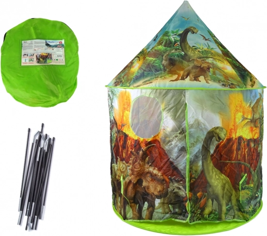 Odkrijte čaroben skrivni kotiček za male pustolovce – otroški šotor z motivom dinozavrov v zeleni barvi. Ponuja hitro in enostavno postavitev, varno in udobno igro doma ali na vrtu, zahvaljujoč stabilnemu ogrodju in vodoodbojnemu poliestru pa je idealen za vsakodnevno zabavo. Dve mrežasti okenci in zložljiv vhod z ježkom zagotavljata kroženje zraka in udobje.
