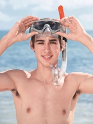 Zgornji del snorkla je opremljen s tehnologijo suhe cevi, ki omejuje vdor vode pri valovih ali ob naključni potopitvi.