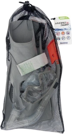 Plavuti imajo mehko žepno stopalo in nastavljiv petni trak, zato trdno sedejo in ne drsijo z noge. Velikostni razpon 41–46 pokrije večino odraslih uporabnikov. Celoten set je enostaven za prenašanje in pripravljen za takojšnjo uporabo pri vaših vodnih dogodivščinah.