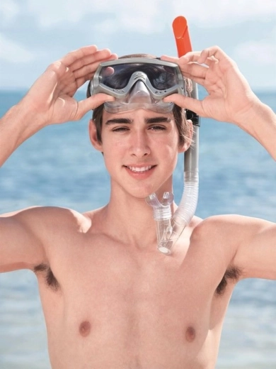 Ta popoln siv komplet je idealen za rekreativno snorklanje v morju ali jezeru. Maska z vzdržljivim kaljenim steklom nudi čist pogled pod vodo, silikonski tesnilni rob se zanesljivo prilagodi obrazu in drži brez neprijetnega pritiska. Snorkel s tehnologijo »suhe cevi« zmanjšuje vdor vode, zato lahko na gladini mirno dihate.