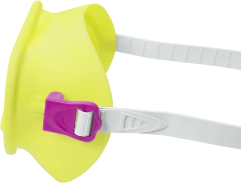 Prozorne leče z UV-zaščito in mehko tesnilo okoli obraza preprečujejo vdor vode. Nastavljiv naglavni trak drži masko stabilno na mestu tudi pri razigrani igri v vodi.