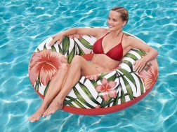 Stilni plavalni obroč BESTWAY s tropskimi cvetovi je odlična izbira za sprostitev in vodne zabave. Zaradi velikega premera 119 cm nudi udobje in stabilnost, ne glede na to, ali se učite plavati ali se le zibljete na gladini. Odporen material PVC prenese slano in klorirano vodo ter je enostaven za vzdrževanje.