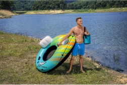 Napihljiv lounge obroč Bestway združuje udobje, stabilnost in vzdržljivost. Mrežasto dno vas prijetno osveži, medtem ko visok naslon podpre hrbet in glavo. Zahvaljujoč vgrajenemu držalu za pijačo si lahko privoščite pijačo kar na vodi, čvrsti ročaji pa olajšajo rokovanje in prenašanje.