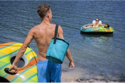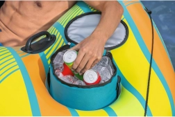 Vgrajena torba/hladilnik ohranja pločevinke in steklenice dlje časa hladne – idealno za celodnevno sprostitev ob jezeru ali v bazenu.