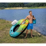 Uživajte v poletju v popolnem miru na napihljivem obroču z naslonom znamke Bestway. Prostoren sedež z mrežastim dnom prijetno hladi, vgrajeni držalo za pijačo poskrbi, da je pijača vedno pri roki, čvrsti ročaji pa zagotavljajo stabilnost pri vstopanju in počivanju. Trpežen PVC material, udoben napihljiv naslon ter praktična torba/hladilnik za pijačo naredijo ta obroč idealnega spremljevalca za bazen, jezero ali reko.