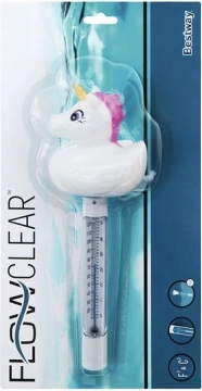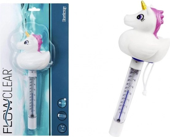 Uživajte v kopanju pri idealni temperaturi s plavajočim bazenskim termometrom BESTWAY v obliki samoroga. Jasna lestvica prikazuje vrednosti v stopinjah Celzija in Fahrenheita, konstrukcija iz ABS pa zagotavlja odpornost proti vodi in soncu. S paščkom z vrvico termometer enostavno pritrdite na rob bazena.