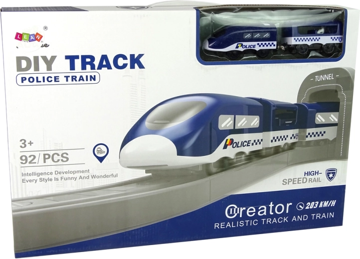 Policijsko mestece vključuje policijsko bazo, 5 vozil in tire. Vse je v modri barvi. Z baterijami napajan vlak vozi s hitrostjo 203 km/h.