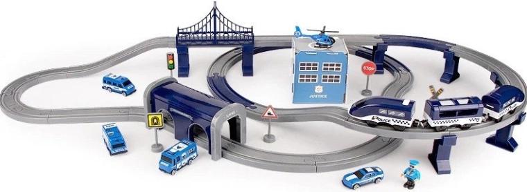 .Velik komplet s 92 deli, s katerim lahko ustvarite lastno policijsko mestece z lastno železniško progo in uživate v zabavi. Skupaj preživet čas pri gradnji tirnic za vlakce, razporejanju infrastrukturnih elementov in ustvarjanju zanimivih igralnih scenarijev bo odlična zabava, ki povezuje družinske člane.