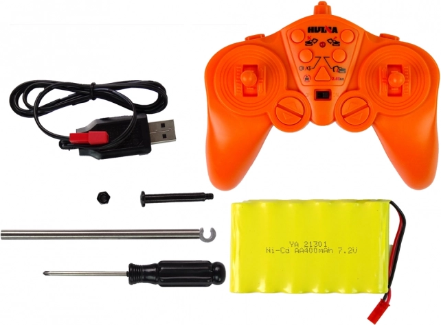 - gosenicni bager HUINA, daljinski upravljalnik, baterija 7,2 V 700 mAh, USB polnilec, navodila