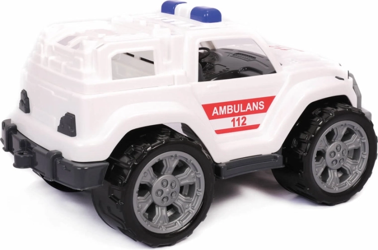 Vozilo ima masiven terenski dizajn, velika kolesa izstopajo že od daleč in dajejo vtis moči avtomobila. Na bokih so rdeče nalepke z napisom Ambulance, ki vozilu dodajajo značaj. V notranjosti sta voznikova kabina in zadnji del vozila izdelana do najmanjših podrobnosti, ki spominjajo na realističen prototip. Igrača je super izbira za vsakega malega ljubitelja avtomobilčkov, pa tudi poklica reševalca – razširila bo njegovo zbirko vozil in mu prinesla veliko zabave.