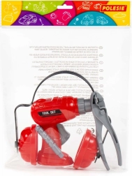 Ta otroški komplet orodja spremeni vsak prostor v malo delavnico. S pritiskom na gumb se sveder v vrtalniku zavrti, zaščita za sluh doda igri avtentičnost, klešče pa pomagajo pri “popravljalskih” izzivih na težje dostopnih mestih. Živo rdeča barva in ergonomske oblike so prilagojene za udoben oprijem in varno igro.