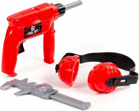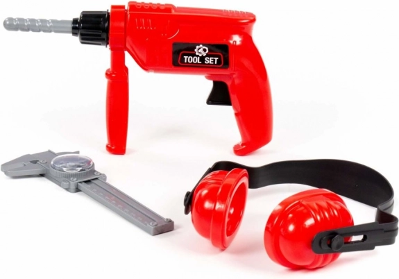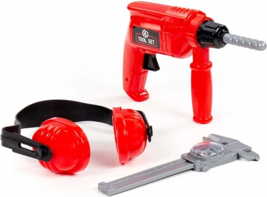 Zgradite svojo delavnico s tem otroškim kompletom orodja! Vsebuje rdeči vrtalnik z vrtečim se svedrom, glušnike in pomično merilo. Odlična igra za male mojstre, ki razvija fino motoriko, domišljijo in koordinacijo oko–roka. Vse je lahkotno, varno in prilagojeno otroškim rokam.