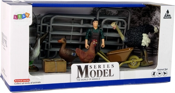 Ta set figuric s kmetije prinaša otrokom svet kmetovanja naravnost v sobo. V njem najdete različne ptičje živali (noj, kura, raca, gos), kmeta s samokolnico in ogrado z vratci. Verodostojni detajli spodbujajo domišljijo ter naravno razvijajo besedni zaklad in znanje o živalih.