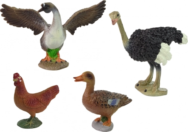 Set vključuje noja, kuro, raco in gos z verodostojnimi detajli, ki takoj pritegnejo otroke in jih učijo prepoznavati živalske vrste.