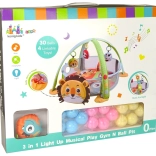 Ta mehka podloga iz prijetnega materiala vabi otroke k odkrivanju barv, oblik in tekstur. Zahvaljujoč prilagodljivi zasnovi jo zlahka spremenite iz proste igralne površine v ogradico z mrežo ob straneh, ki zadrži žogice in igrače v varnem prostoru. Svetleče diode in melodije na lokih ob pritisku na gumbe ustvarjajo spodbudno okolje in motivirajo k gibanju.