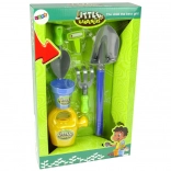 Otroški vrtni komplet je idealen za malega vrtnarja, ki želi sodelovati pri delu na vrtu ali se igrati v peskovniku. Ta komplet vsebuje različna plastična orodja, ki jih je mogoče enostavno prenašati kamorkoli.