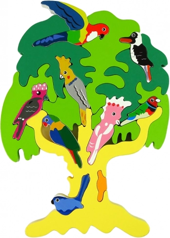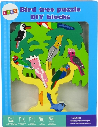 Ta lesena sestavljanka v obliki drevesa ni le odlična zabava, temveč tudi podpora pri razvoju vašega otroka. Otroci se učijo natančnosti, krepijo domišljijo, spomin in celo znanje o različnih vrstah ptic, kot so papagaji. Končano drevo v zelenih odtenkih bo postalo čudovita dekoracija v otroški sobi.