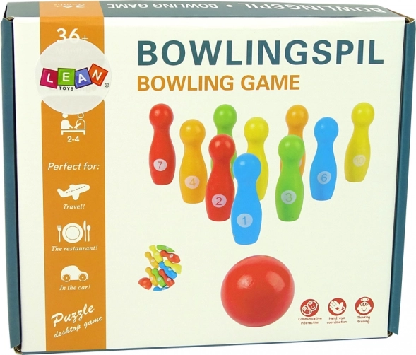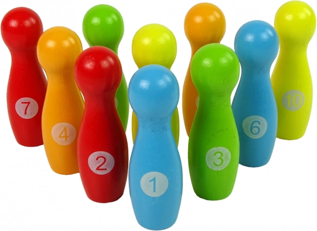 Vsak kegelj ima številko od 1 do 10 in je v različnih barvah. Igrača je barvita in izdelana iz kakovostnega lesa – deli so popolnoma zbrušeni in prebarvani z ekološko neoporebnimi barvami. Poleg tega ne vsebuje ostrih delov ali robov, zato se otrok pri igri z njo ne bo poškodoval.