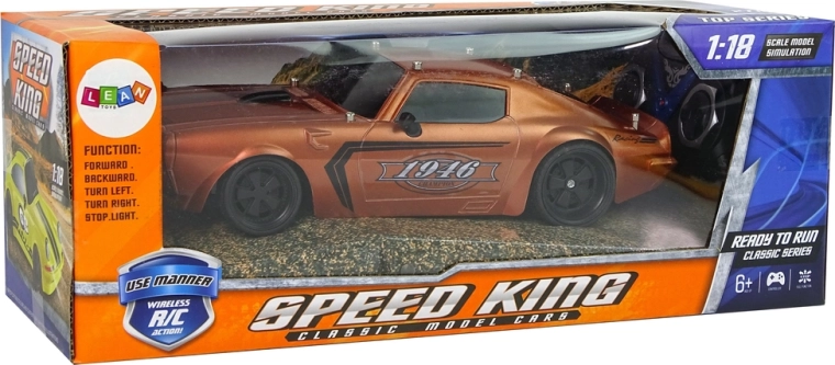 Vozilo ima lahko in robustno konstrukcijo, športni dizajn s črnimi stekli in črnimi detajli na pokrovu motorja ter nalepkami Champion 1946. Gumijaste pnevmatike zagotavljajo oprijem cestišča med vožnjo. Upravljanje vozila je zabavno predvsem za najmlajše, zato priloženi daljinski upravljalnik omogoča vodenje majhnega modela avtomobila z dvema ločenima gumboma za vožnjo naprej/nazaj in vstran.