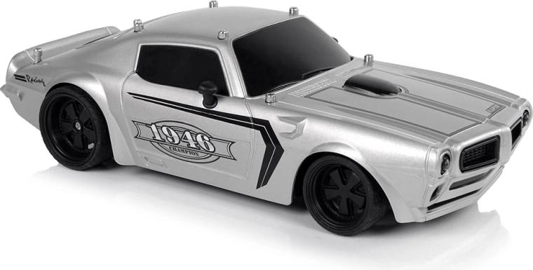 Avto ima lahko in robustno konstrukcijo, športni dizajn s črnimi stekli ter črnimi detajli na pokrovu motorja in nalepkami Champion 1946. Gumijaste pnevmatike zagotavljajo oprijem na cesti med vožnjo. Upravljanje vozila je zabavno predvsem za najmlajše, zato omogoča priložen daljinski upravljalnik vodenje malega modela avtomobila z dvema ločenima gumboma za vožnjo naprej/nazaj in vstran.