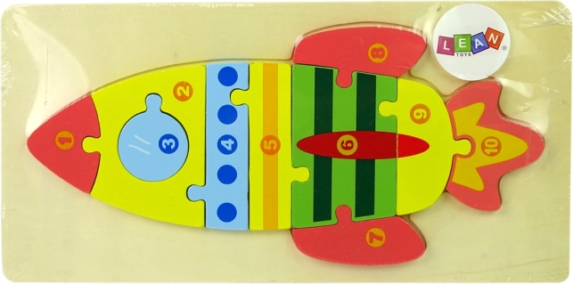Odkrijte zabavno in izobraževalno leseno sestavljanko v obliki rakete, ki otroke uči prepoznavati oblike in barve ter hkrati trenira štetje od 1 do 10. Kakovostna lesena izdelava, gladko obrušeni koščki in varne, žive barve zagotavljajo varno igro in dolgo življenjsko dobo.