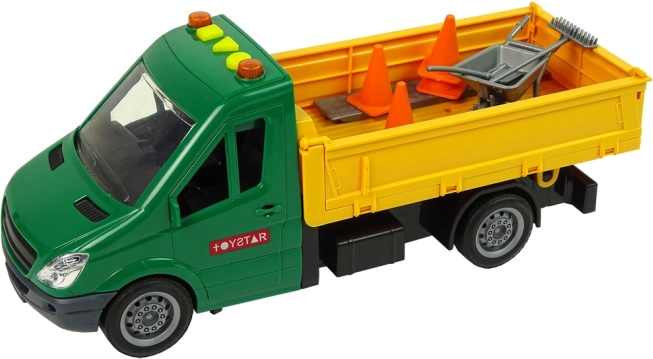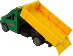 Ta podrobno izdelan cestni tovornjak v zeleno-rumeni barvni kombinaciji navduši otroke na prvi pogled. Zahvaljujoč frikcijskemu pogonu je dovolj, da vozilo rahlo potisnete, in samo zdrvi naprej. Prekucna ladja in izvlečno podvozje olajšata nakladanje in prevoz vseh dodatkov.