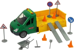 V paketu najdete tudi prometne znake, stožce, samokolnico, lopato in druge dodatke, s katerimi otroci zlahka označijo gradbišče in se naučijo prepoznavati cestne simbole. Igra je še zabavnejša zahvaljujoč zvokom vzvratne vožnje, opozorilnim in nakladalnim učinkom. Kakovostni materiali zagotavljajo dolgo življenjsko dobo in varno zabavo.