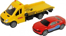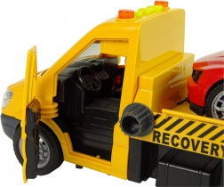 Vstopite v vlogo malega cestnega reševalca. Vlečno vozilo ima odpirajoča se vrata, dvižno rampo z upravljalnim koleščkom in izvlečni priklopni del s kavljem za enostavno pripenjanje in vleko avtomobilčka. Vgrajeni svetlobni in zvočni učinki (hupa, vleka z alarmom, vzvratna vožnja) poskrbijo za pristno doživetje.