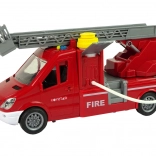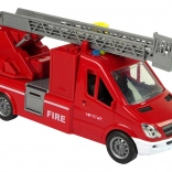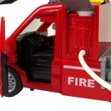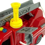 Gasilni avto je opremljen s sistemom, ki omogoča škropljenje vode iz cevi, s čimer otrokom prinaša realistično igro.